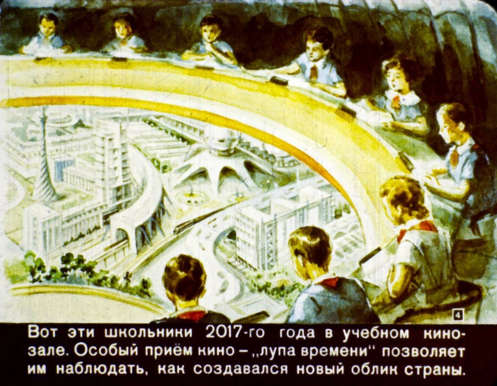 В далеком 1960 году художники студии «Диафильм» фантазировали на тему того, каким будет СССР в годовщину Великой Октябрьской революции, то есть в 2017 году.