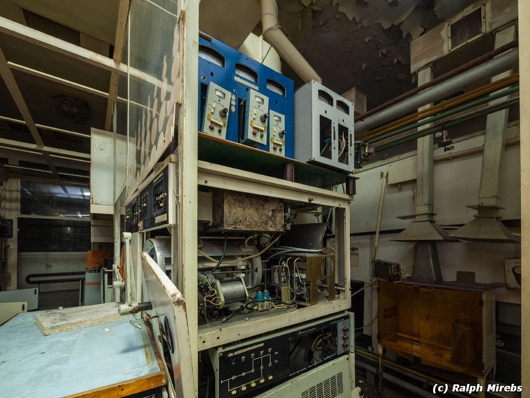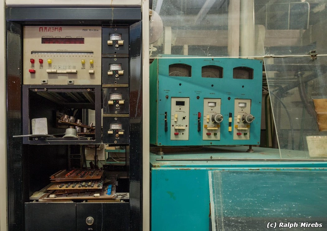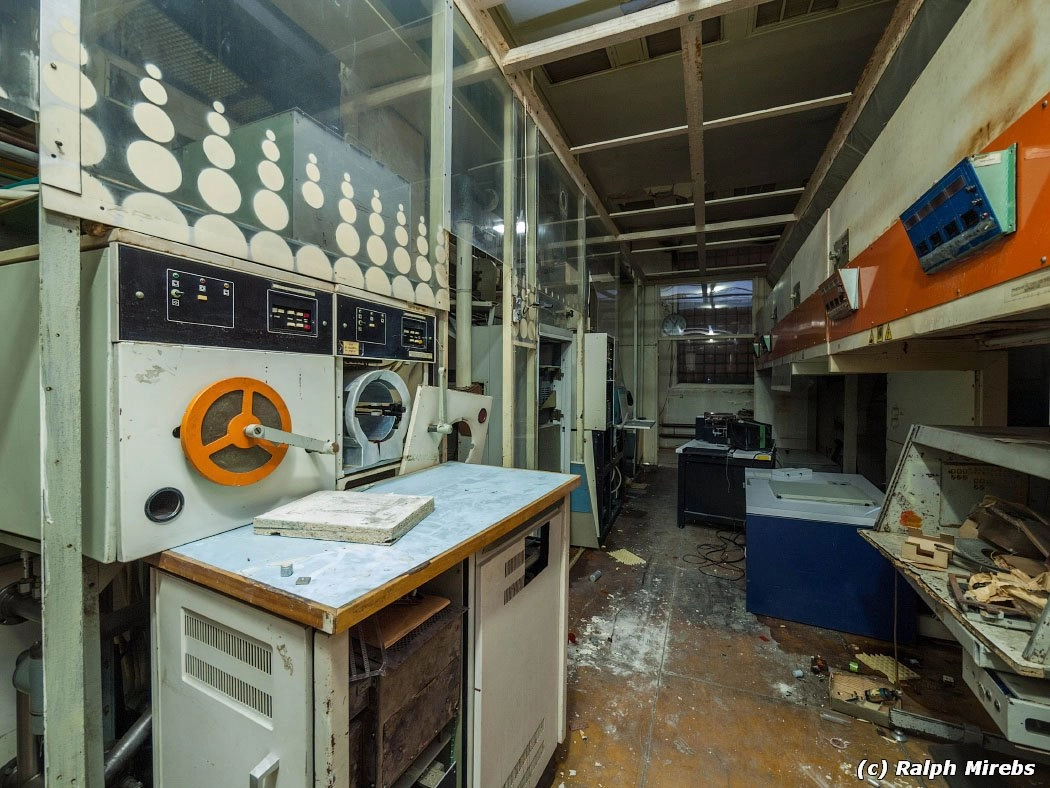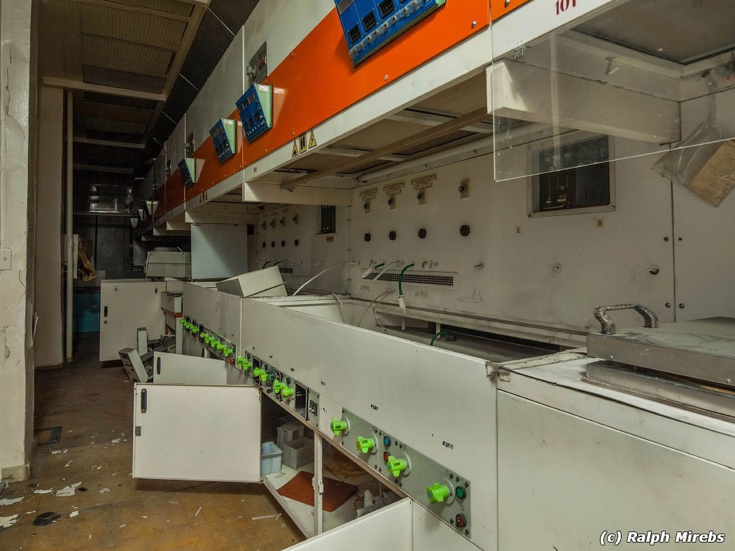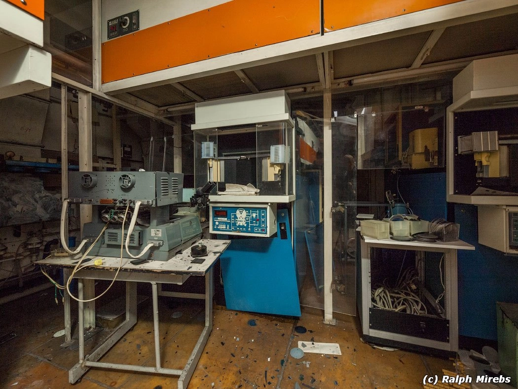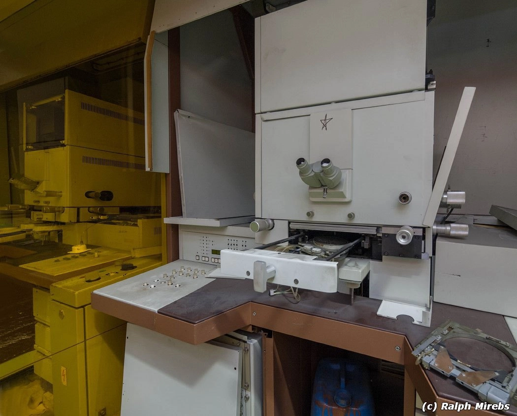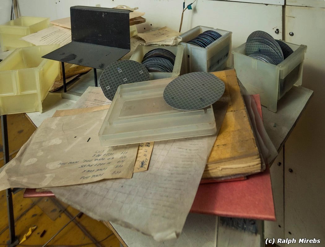 Считаю, что с учётом российского отношения к заброшенным местам (а именно — тащи всё, что тащится и ломай всё, что ломается), цех сохранился очень даже неплохо. Я не стану нагружать текст подробной лекцией про то, как изготавливают чипы, но и без комментариев фотографии не оставлю.