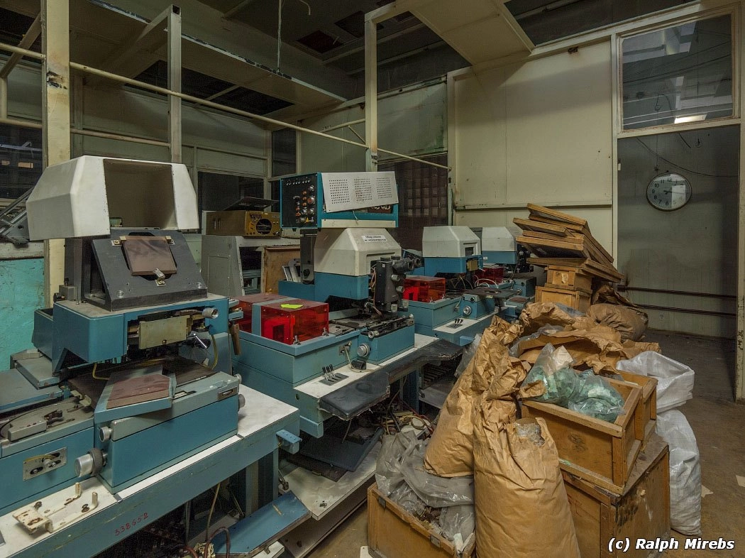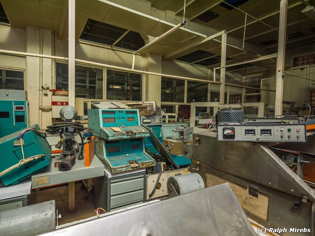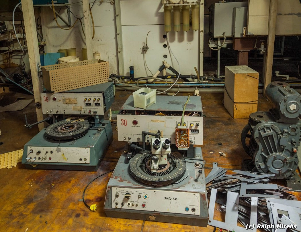 Значительное число станков последующих операций (сварка, корпусирование) за четверть века было развандалено сотрудниками в поисках драг. металлов.