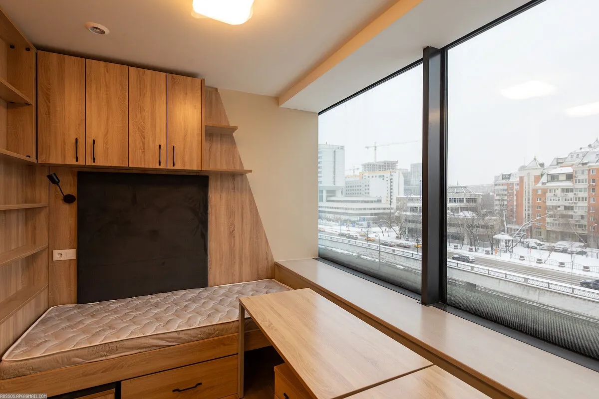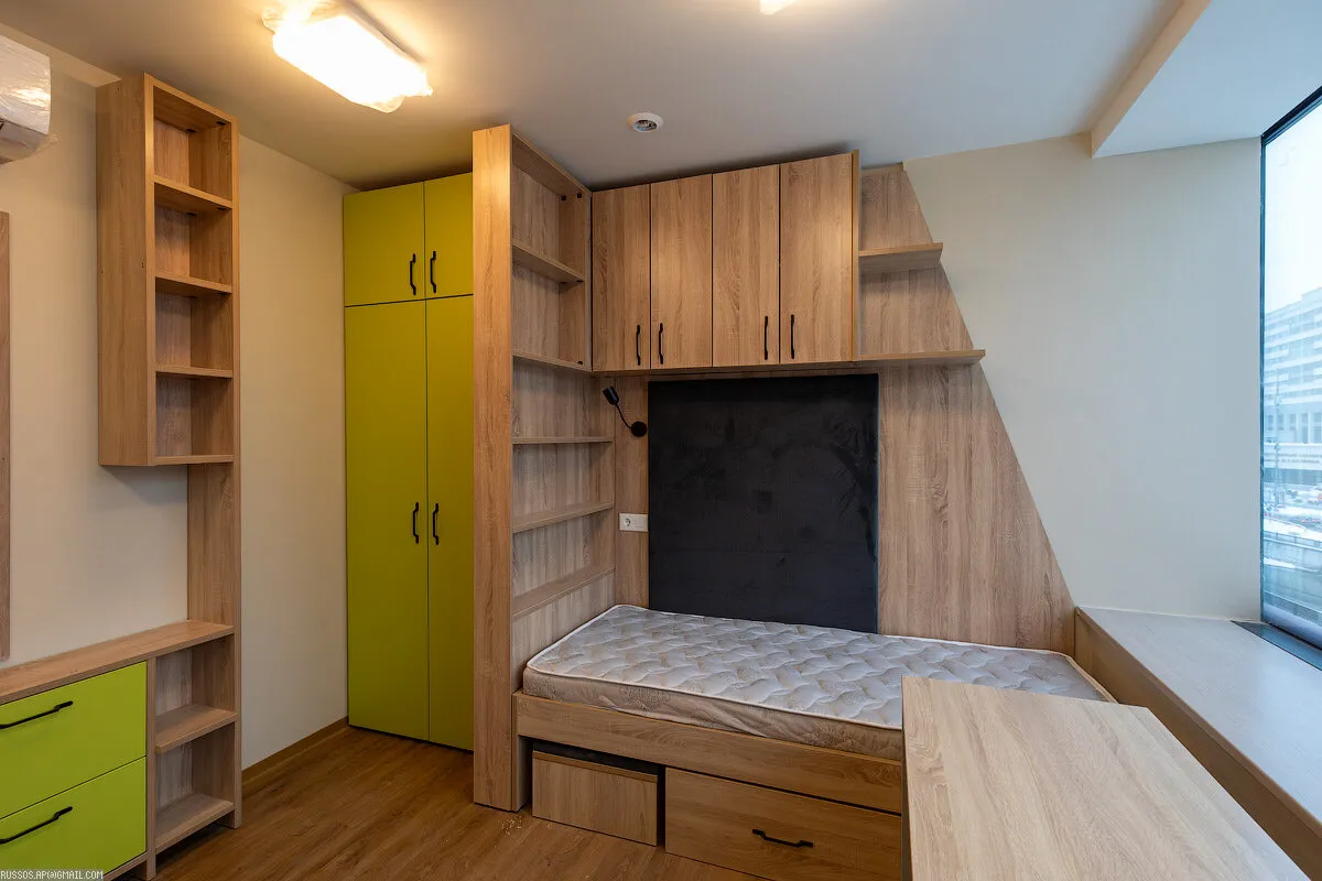 5. Шкафчики, кровать, розетка, рабочее место — вся для комфортного пребывания.