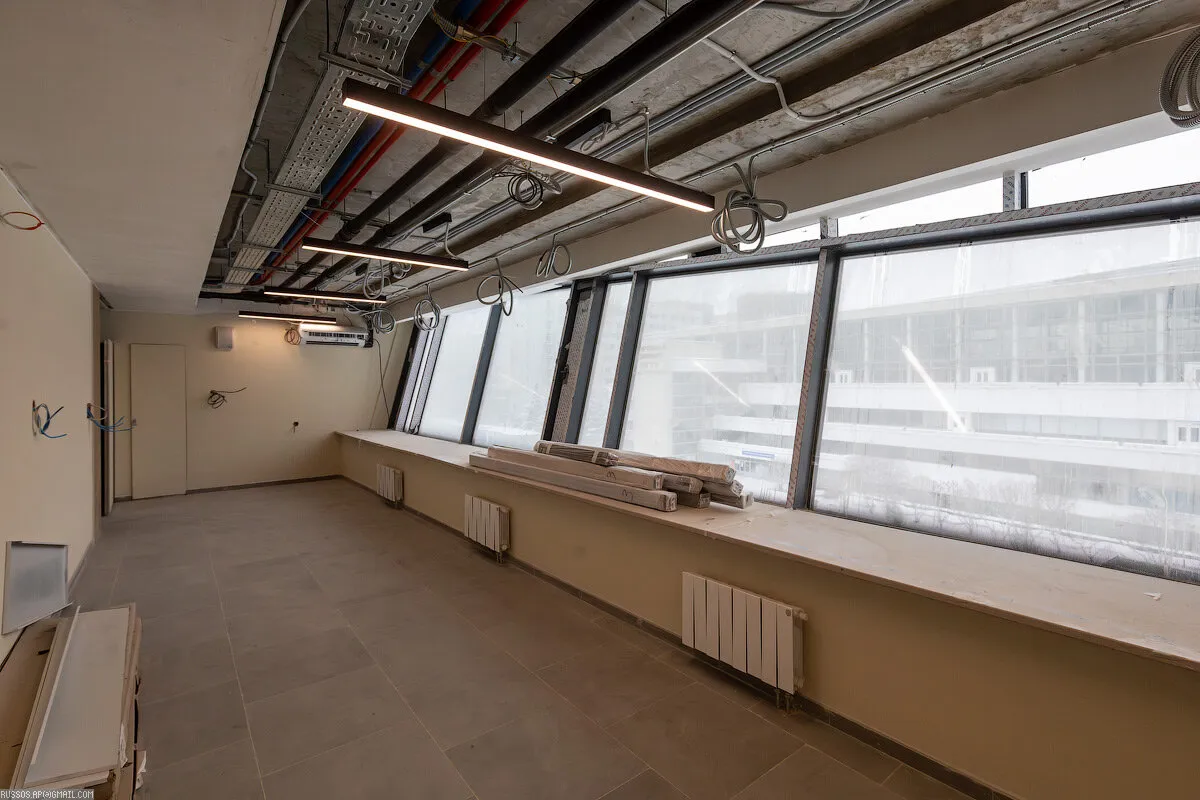 Первый семиэтажный корпус площадью 17 тыс. кв. метров расположится вдоль набережной реки Яузы. На объекте завершено устройство фасадов. Выполняется чистовая отделка, настройка лифтового оборудования, подготовка к поставке мебели. По завершении работ в данном корпусе разместятся коворкинг, столовая, модульные зоны неформального общения, центр информации, залы самоподготовки и групповых занятий.
