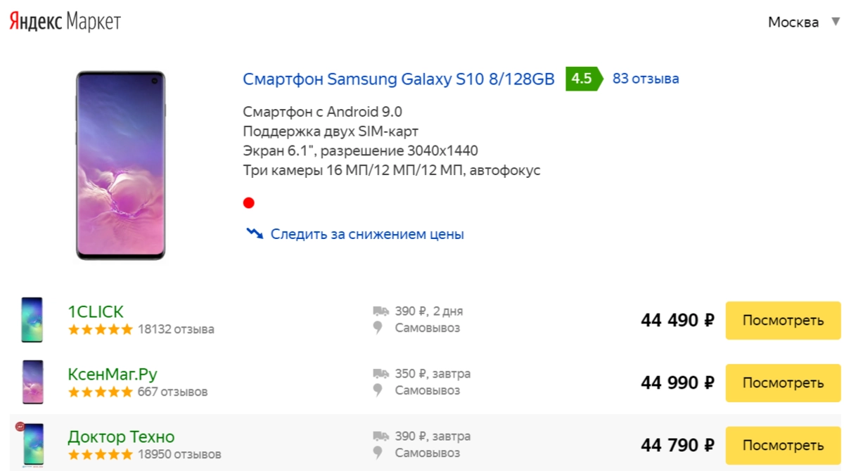 Техническая составляющая смартфона в полном порядке. Девайс работает на топовом восьмиядерном процессоре собственного производства Exynos 9820, имеет 8 Гб оперативной памяти и 128 Гб постоянной. Основная камера состоит из трех сенсоров на 16+12+12 Мп, а фронтальная — 10 Мп. Аппарат прекрасно подойдет для любителей мобильной фотографии, ведь его камера высоко оценена авторитетным сервисом DxOMark. Galaxy S10 предлагают сейчас за 60 тысяч рублей, но благодаря различным акциям, trade-in и кэшбэкам можно прилично снизить цену на него.