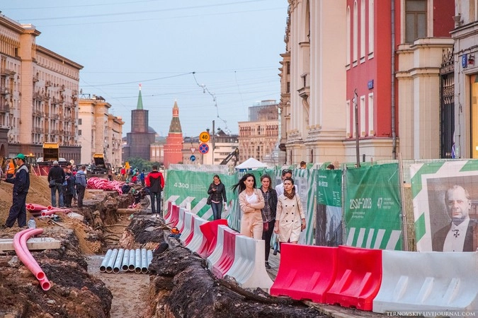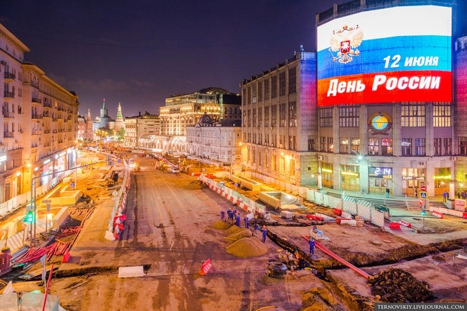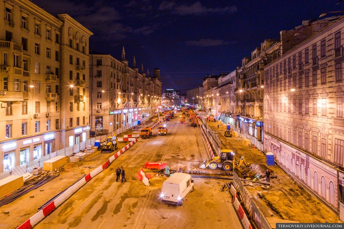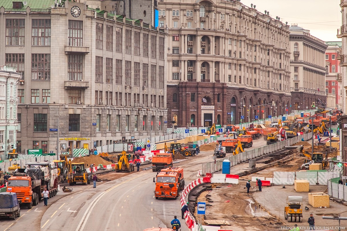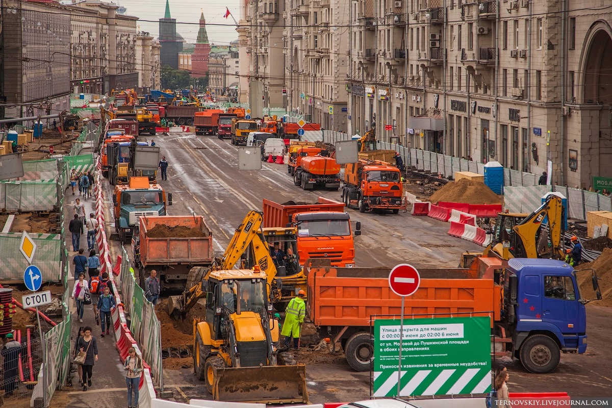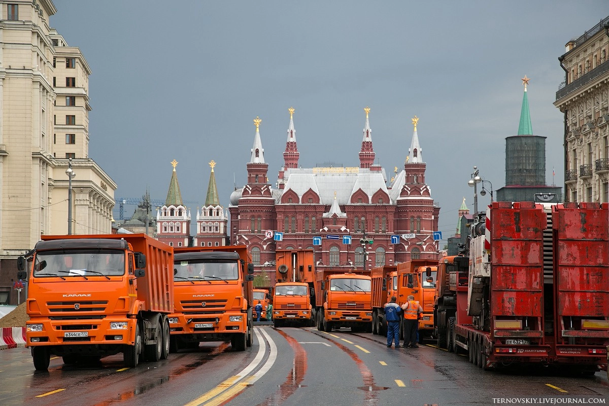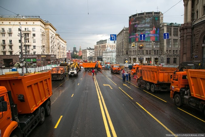 Для этих работ было решено перекрыть участок Тверской от Моховой до Пушкинской площади на два дня. На все про все строителям выделили 50 часов с 4 по 6 июня.
