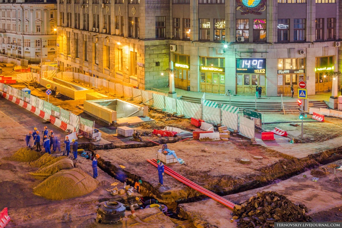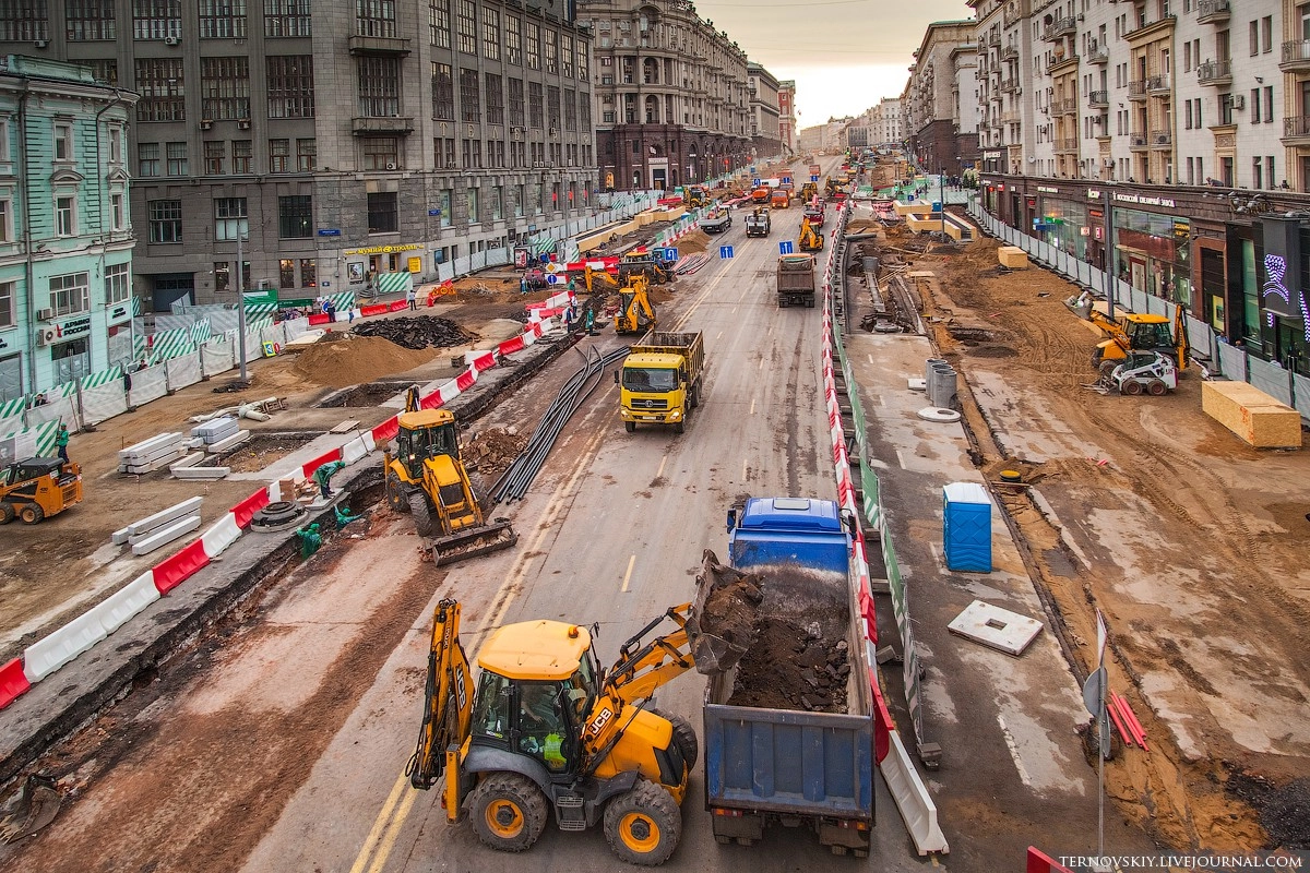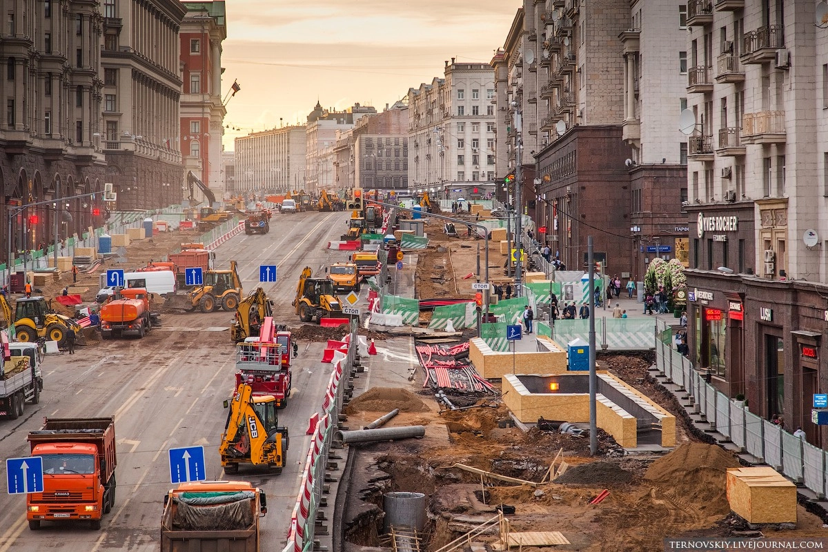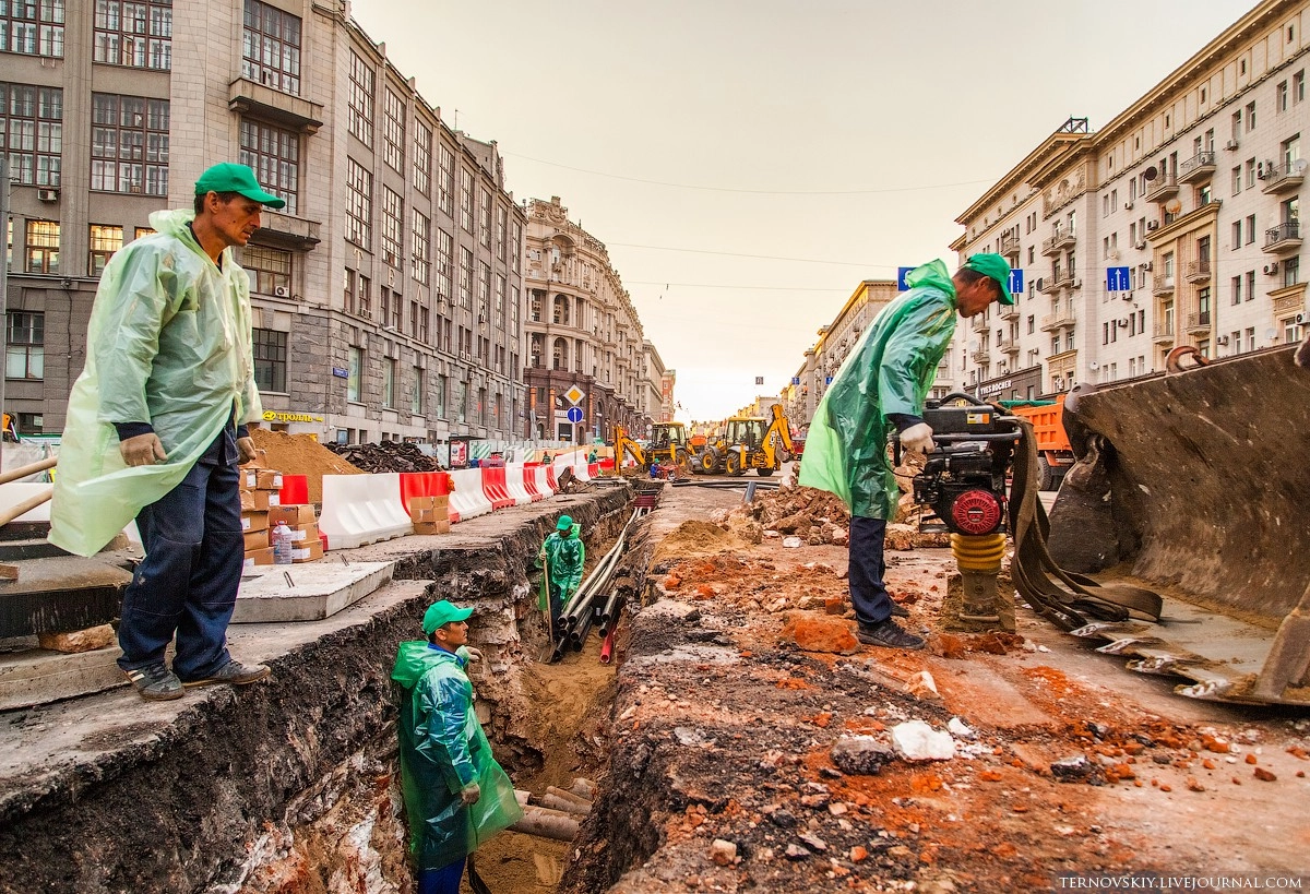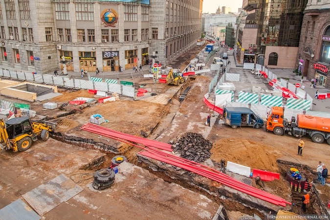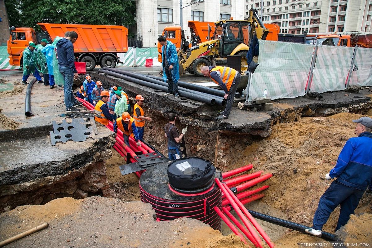 В рамках реконструкции Тверской по проекту «Моя улица», особое внимание уделяется модернизации инженерных систем, бОльшая часть которых проходит под дорожным полотном. Для того чтобы проложить современные коммуникации и убрать все надземные провода под землю, было создано 14 переходов (траншей).