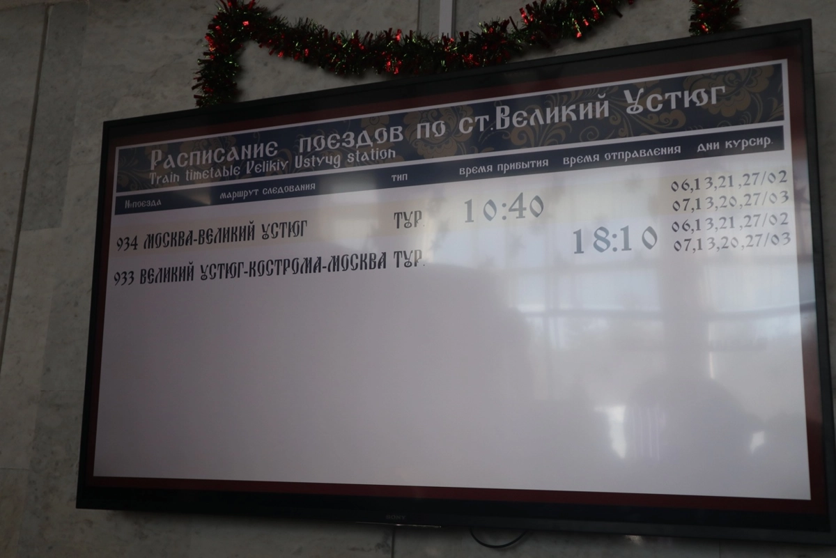 Популярность поезда можно оценить, например, по загруженности этого устюгского вокзала. Что-то мне подсказывает, что никогда ранее он так плотно заполнен не был. Может, разве что, были когда-то какие-нибудь особые случаи или праздники, чтобы одновременно столько людей тут собиралось. Но, скорее всего, нет.