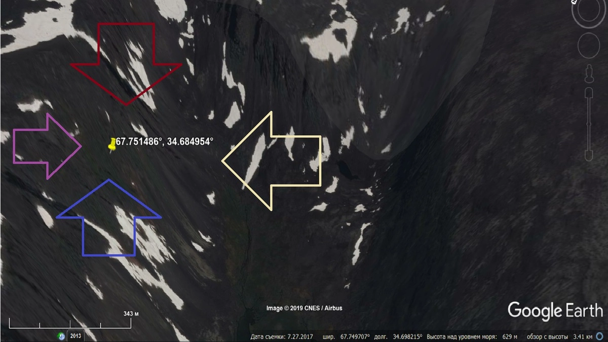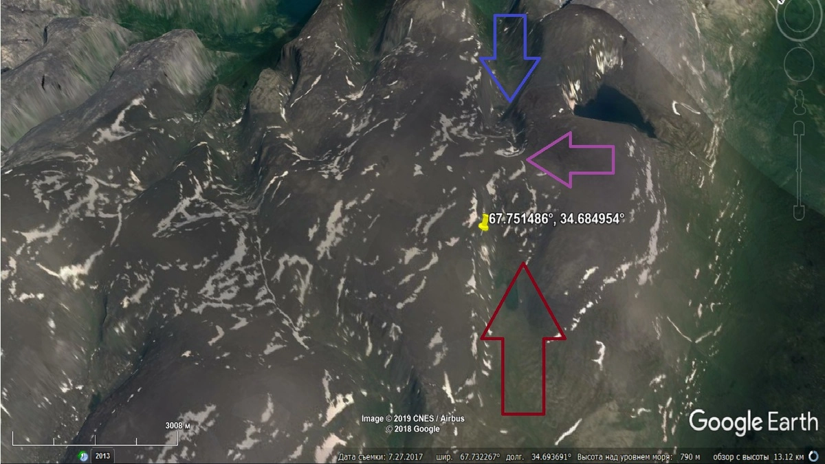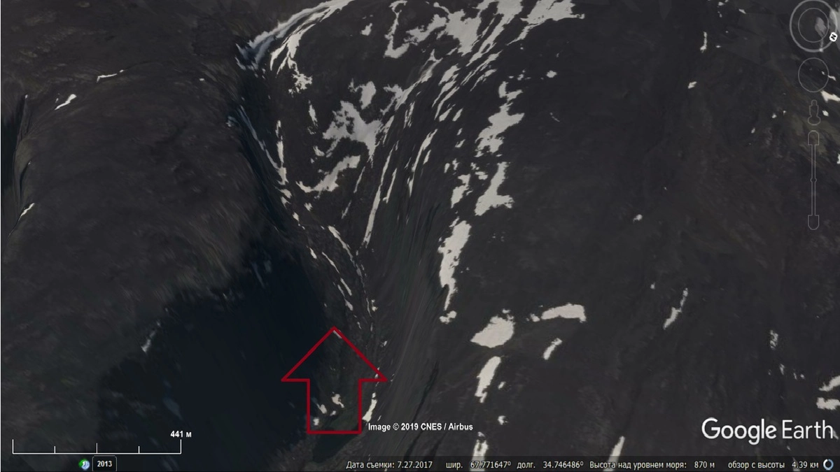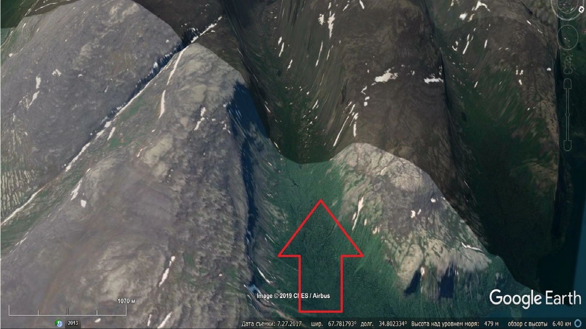Так отчего погибла группа туристов? Как оказалось никакой загадки там не было. Ловозёрские тундры представляют из себя горы, довольно высокие. Они составляют собой т. н. цирк. Или отвесную скалу довольно длинную и достаточно высокую. Цирки эти составляют подобие огромной улитки. Кроме того с обеих сторон горы окружают несколько огромных озёр. А на самой вершине тоже есть небольшое, горное озеро. Студенты с палаткой погибли в точке с координатами 67.751486°, 34.684954°. Это место находится на склоне горного пика. С обоих сторон находятся озёра. Ещё одно озерцо есть на самой вершине. Обе стороны соединились при помощи широкого ущелья.