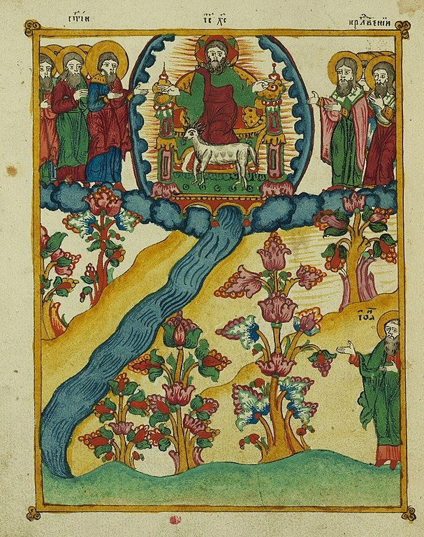 Обилие растительности в этом раю автором «Апокалипсиса» подчеркивается специально: И показал мне чистую реку воды жизни, светлую, как кристалл, исходящую от престола Бога и Агнца. Среди улицы его, и по ту и по другую сторону реки, древо жизни, двенадцать [раз] приносящее плоды, дающее на каждый месяц плод свой; и листья дерева — для исцеления народов. (Откр. 22:1−2)