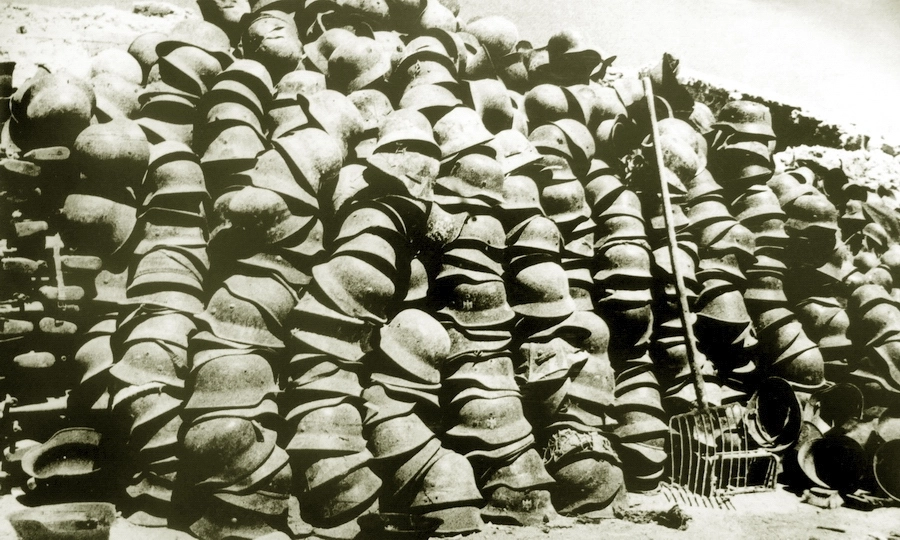 Каски солдат капитулировавшей 17-й армии вермахта, сложенные в освобождённом Севастополе, май 1944 года. Такому итогу предшествовали упорные бои
