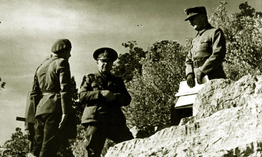 Командующий румынским 7-м горным корпусом генерал Уго Шваб и командующий XLIX горным корпусом вермахта генерал Рудольф Конрад инспектируют войска, февраль 1944 года