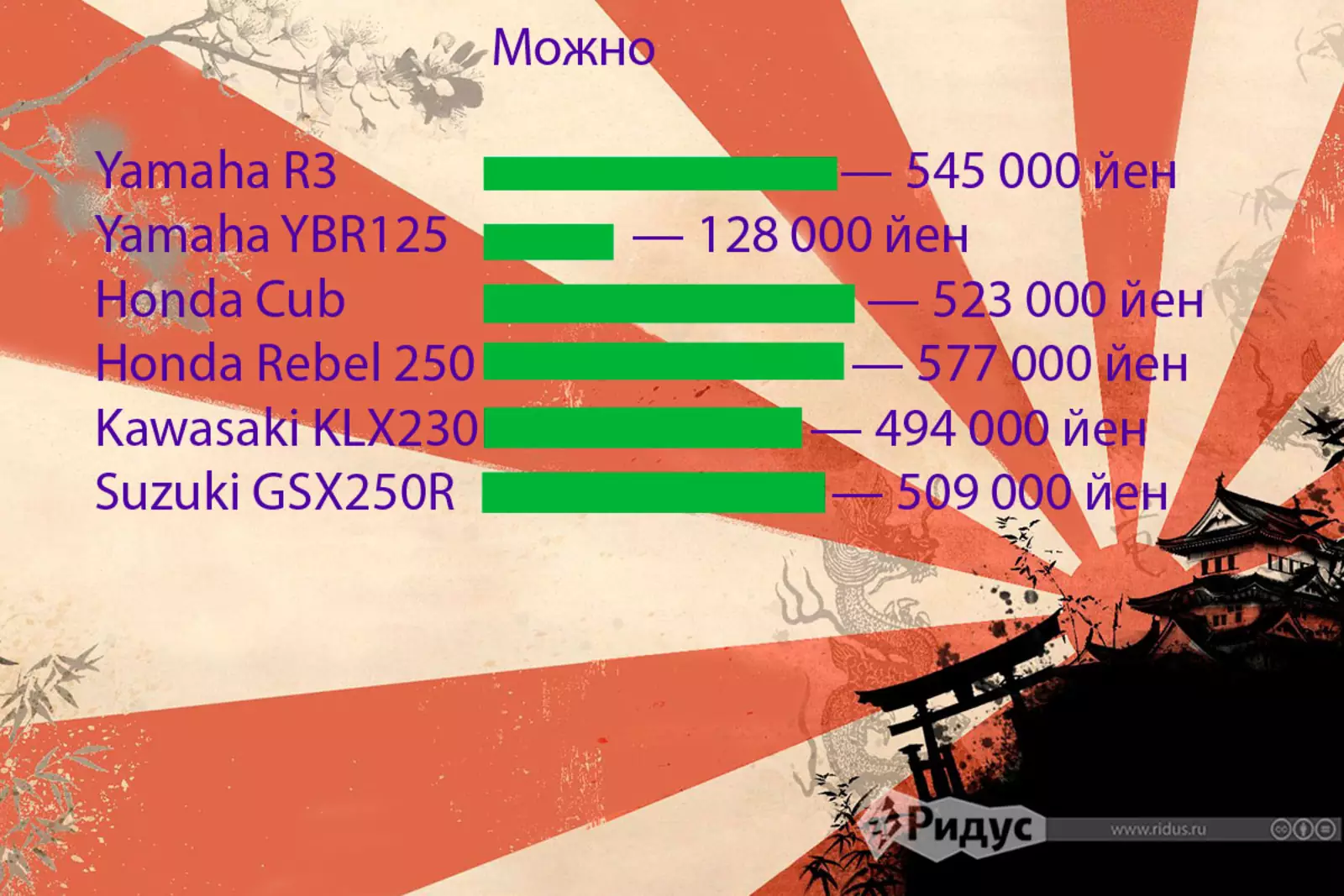 Япония запретила продавать в Россию мотоциклы. Пошли слухи, что только люксовые. На самом деле нет. Нельзя продавать мотоциклы дороже 600 тысяч йен, или 4800 долларов. То есть все более-менее нормальные модели в этот лимит не укладываются.