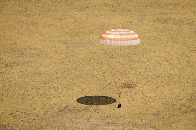 Капсула «Союза ТМА-03М» приземляется в Казахстане. © Bill Ingalls/Reuters