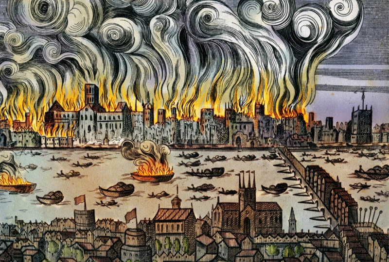 К концу 1666 года чума начала отступать. Но одна катастрофа привела к другой. Осенью Великий пожар бушевал целую неделю и уничтожил центр Лондона. Ущерб был так велик, отчасти потому, что городские власти не спешили реагировать, потратив более года на борьбу с чумой. В результате 70 тысяч горожан остались без крова и пришли в ярость, угрожая беспорядками.