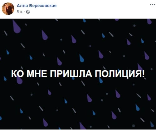 Позднее Березовская опубликовала запись о том, что полиция пришла и к ней.