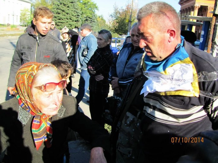 Каратель говорит, что был «там» поваром и крови на нем нет. В беседе с жителями, задержанный заявил что ему платили всего 4000 гривен.