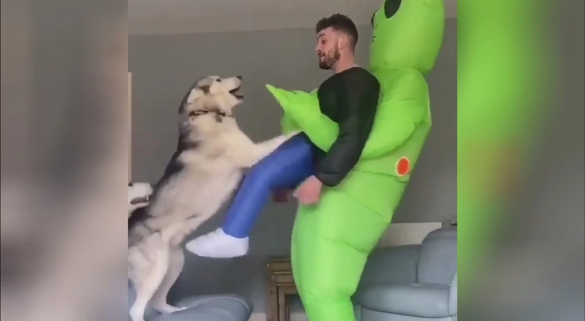 «Караул!»: хозяин перепугал псов, притворившись, что его похищают пришельцы