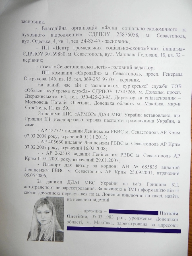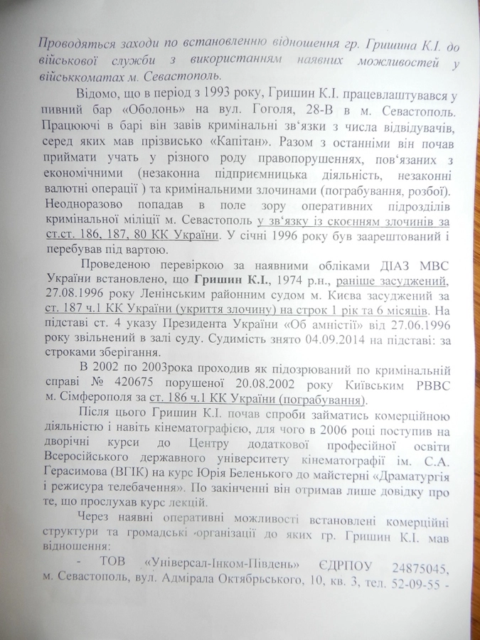 На своем ресурсе Шарий выложил фотокопии документов, которые в МВД Украины предназначались для служебного пользования — характеристика на Константина Гришина, известного ныне как «геройский комбат» Украины Семен Семенченко.