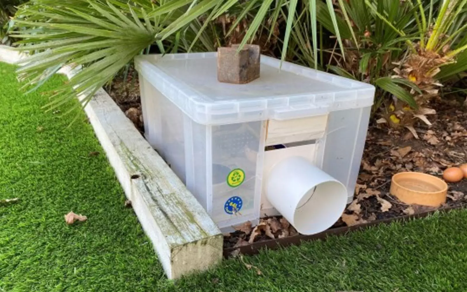 56-летняя жительница Великобритании Хелен Бранском-Дэвис сделала кормушку для ежей, чтобы обеспечить диким животным место, в котором они смогли бы спокойно поесть. Кормушка состоит из большого пластикового ящика и трубы, через которую ежики могут забраться внутрь.