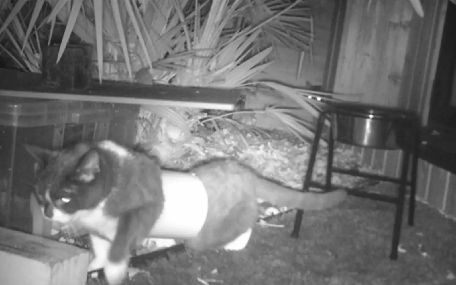 Хелен много раз замечала, что более крупные животные грызли трубу, но была уверена, что никто из них не попытается залезть в нее. Однако она ошиблась. Однажды утром британка проснулась и обнаружила, что с кормушкой что-то не так: часть пластмассового туннеля, ведущего к мискам с едой, отсутствовала. Женщина проверила запись с камеры видеонаблюдения, чтобы узнать, что произошло, и с трудом сдержала смех.