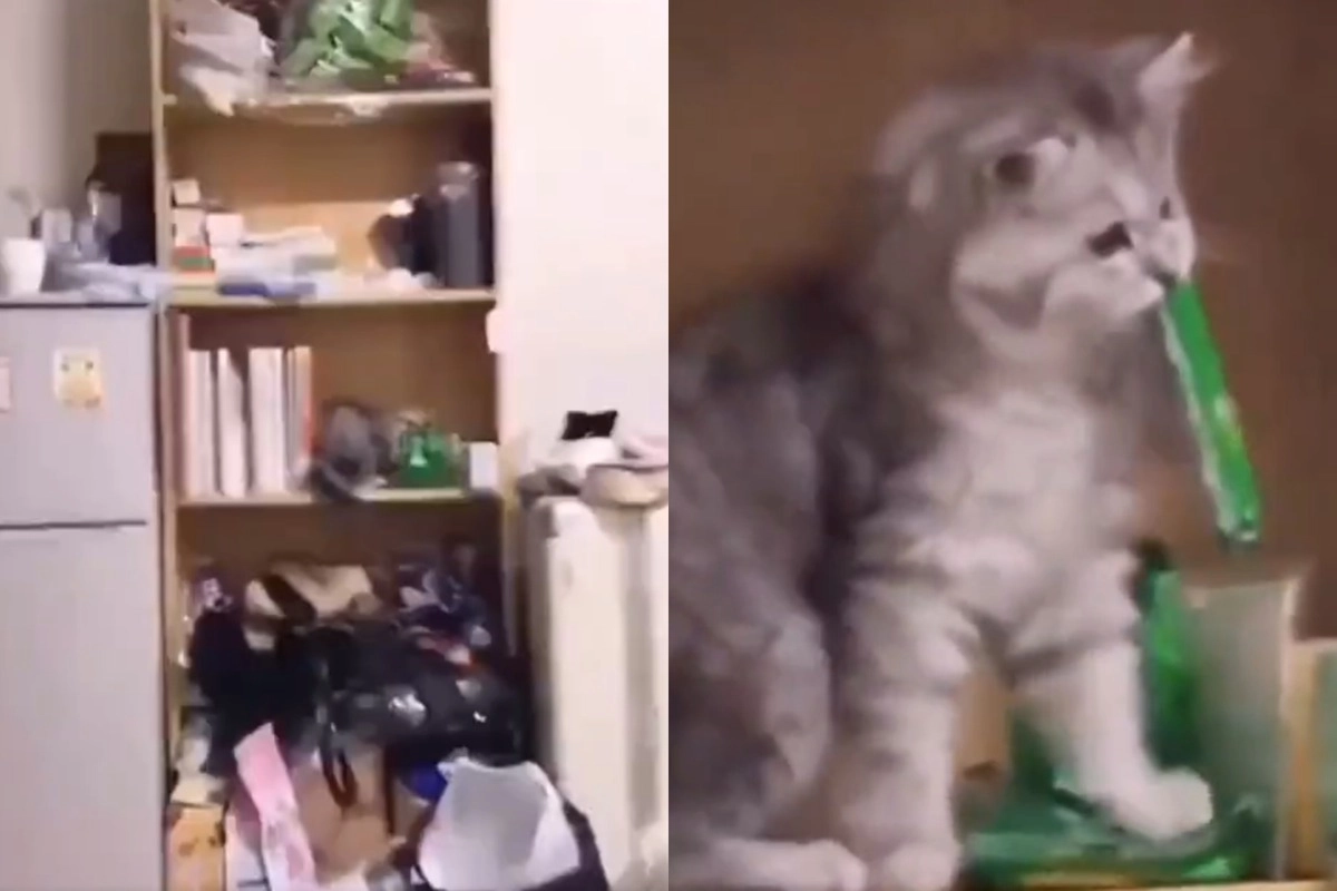 Карма в действии: котёнок-воришка столкнулся с мгновенным наказанием