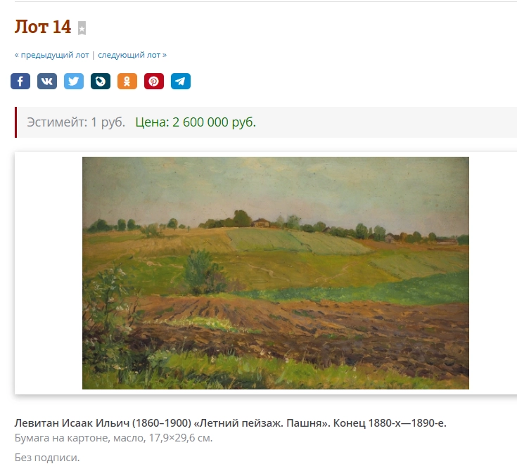 В Москве украдена картина Левитана «Летний пейзаж. Пашня», сообщает РЕН ТВ. С заявлением в полицию обратился директор Научно-исследовательской независимой экспертизы им. П. М. Третьякова Александр Чваль.