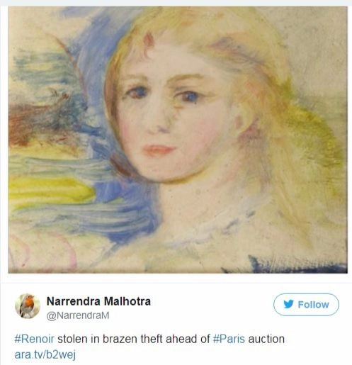 За день до начала торгов из аукционного дома в парижском пригороде Сен-Жермен-ан-Ле была украдена картина Огюста Ренуара «Портрет молодой девушки со светлыми волосами», начальная стоимость которой должна была составить 25−30 тысяч евро.
