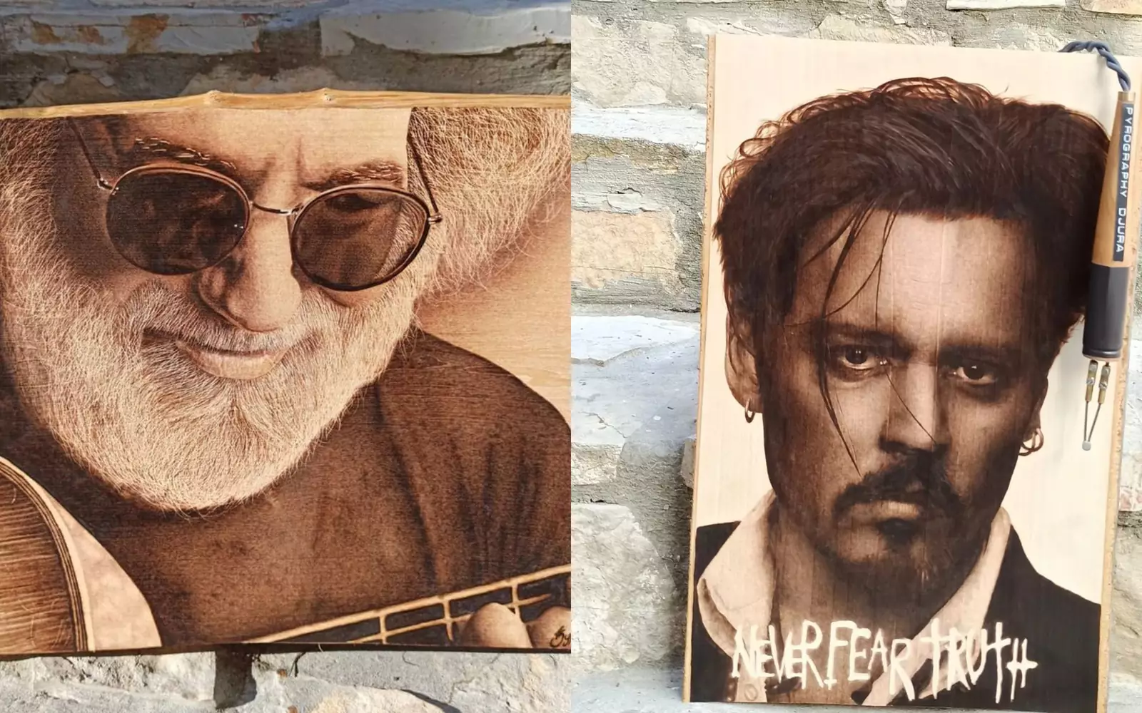 Картины с огоньком: парень создает гиперреалистичные портреты с помощью пирографа