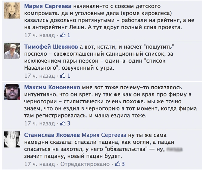 К разоблачениям Кашина подключились и другие представители неравнодушной сетевой общественности. Они припомнили Алексею Навальному все темные делишки и отдельно обратили внимание, что санкционный список Обамы практически один в один повторяет ранее опубликованный «список Навального».