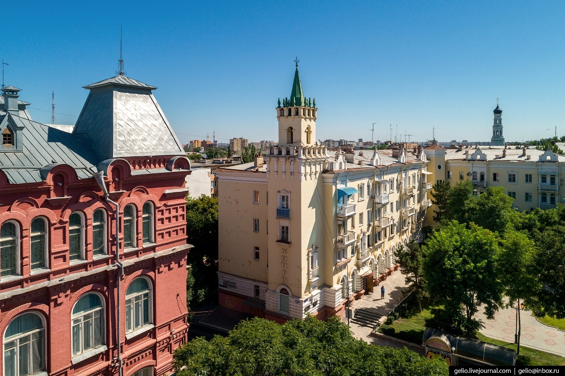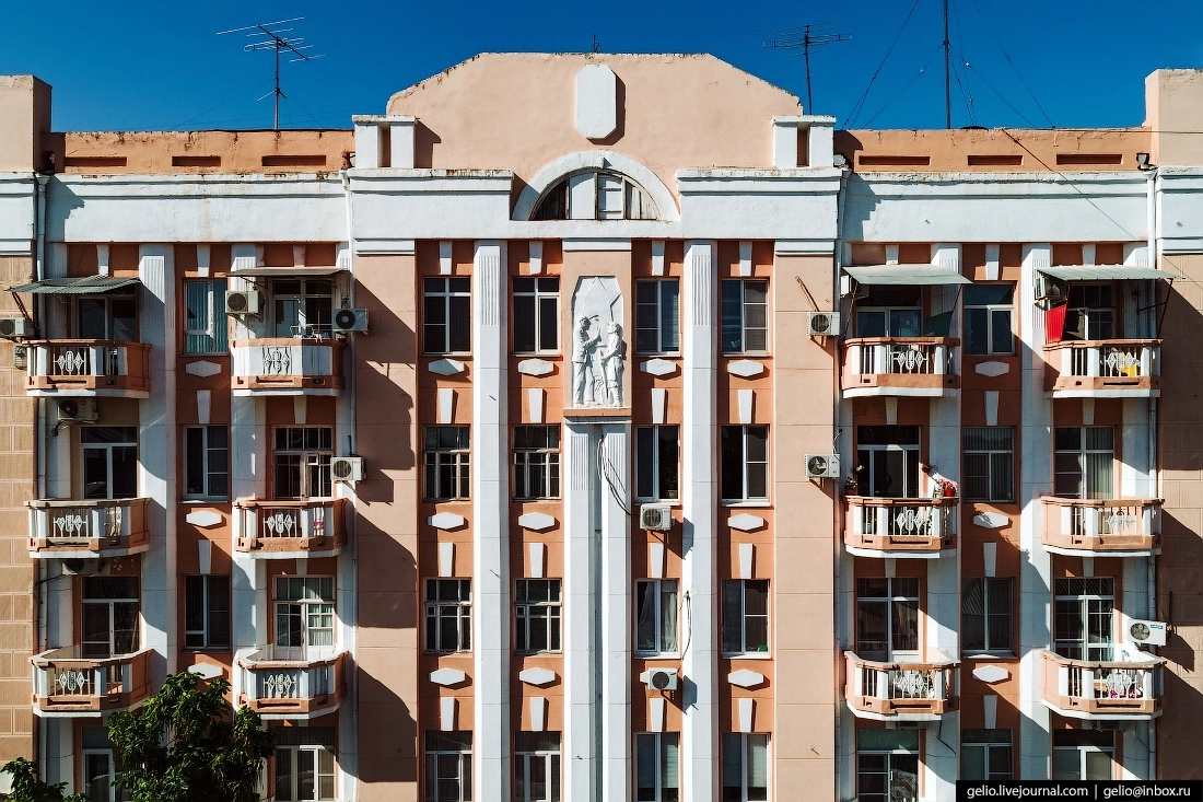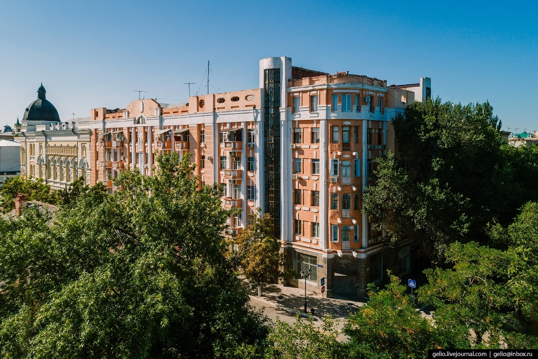 24. Жилой дом городского коммунального отдела на улице Советской, 25. Его построили в 1927-1937 годах — это крупнейшее советское здание Астрахани, построенное до Великой Отечественной войны.
