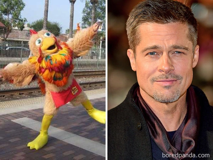 Брэд Питт в костюме цыплёнка завлекал посетителей в ресторан