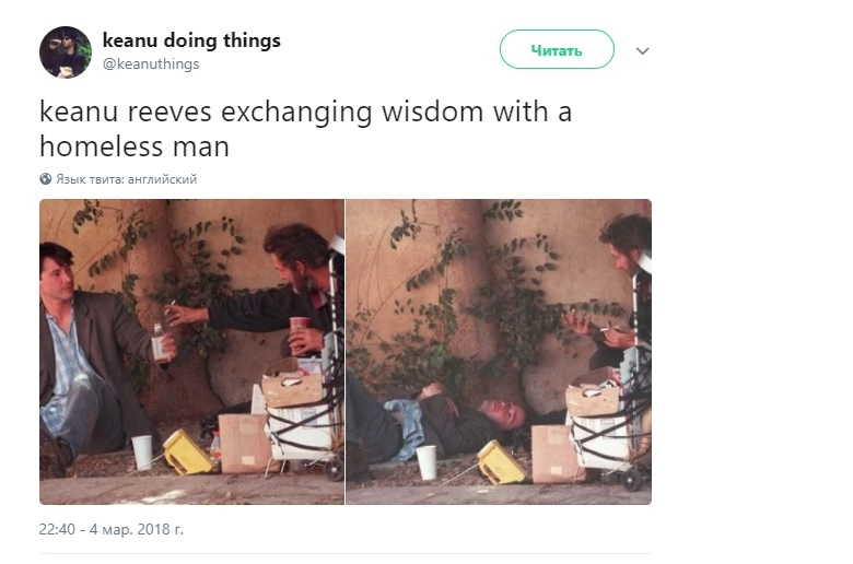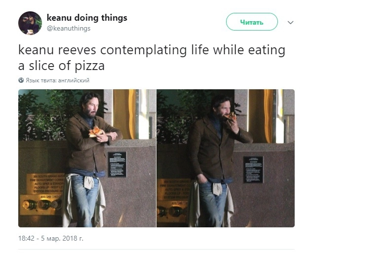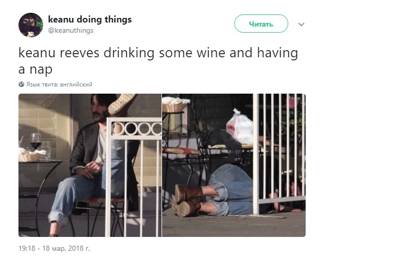 Всё это послужило поводом к созданию фанатской странички Киану Ривза в Twitter. Она называется «Киану делает простые вещи». Здесь публикуют фото из повседневной жизни актера.