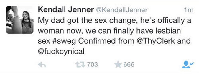 «Мой папа изменил пол, и теперь он официально женщина. Мы наконец сможем заниматься с ним лесбийским сексом», — это сообщение в микроблоге модели Кендалл Дженнер моментально «взорвало» интернет.