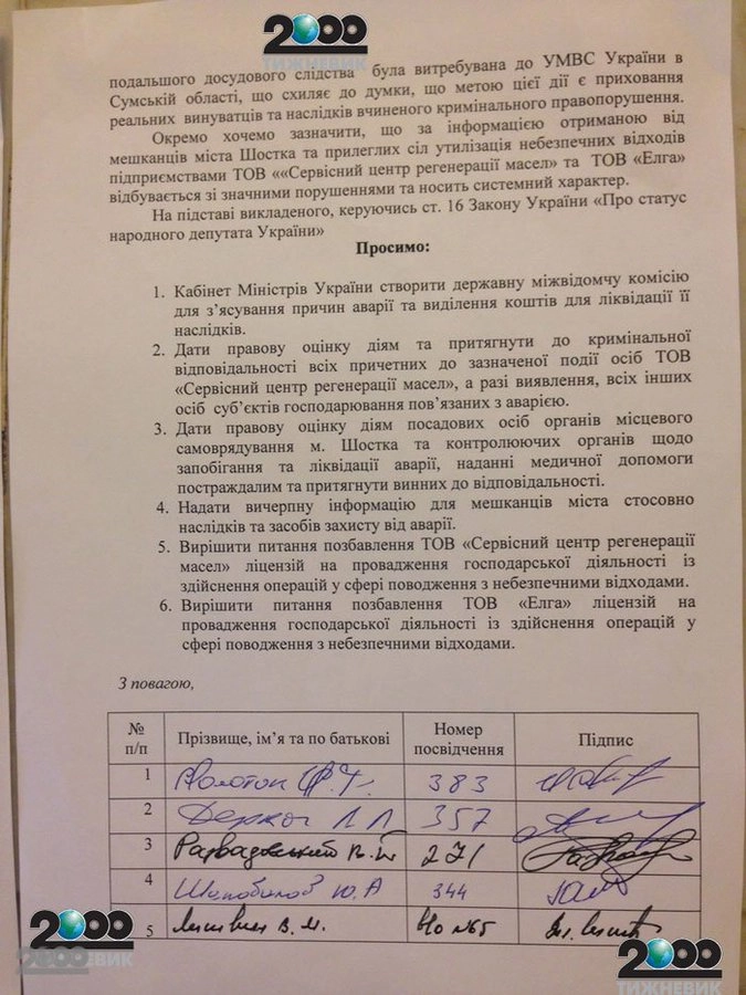 Местные власти обратились в областную комиссию по ТБ и ЧС с просьбой предварительно признать происшествие в Шостке чрезвычайной ситуацией государственного уровня. Исполком горсовета обратился в межрайотдел СБУ, райгосадминистрацию, горотдел милиции, Министерство экологии и природных ресурсов относительно запрещения работы предприятий ООО «Элга» и ООО «Сервисный центр регенерации масел» и провести дегазацию территории, на которой размещены данные предприятия. Кроме того, городские власти хотят убрать яды с несанкционированной свалки между Шосткой и с. Ковтуново.