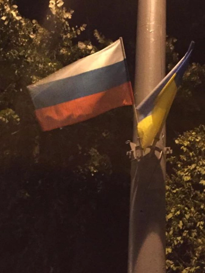 Теперь по всему Киеву развиваются по соседству российский триколор и флаг «незалежной Украины».