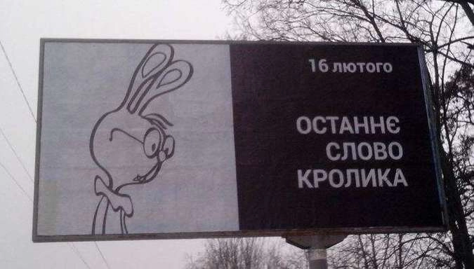 В двух районах Киева на набережной Днепра появились билборды с изображением кроликов. Помимо животных на плакатах указана дата 16 февраля.