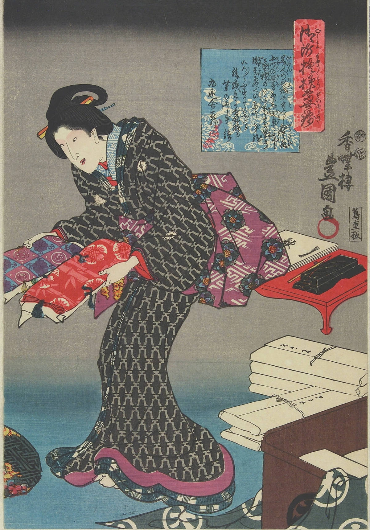 В модной Японии того времени художники и куртизанки определяли тенденции, которым следовал средний класс: тот стремился к стилю, жаждущему новизны, и хотел передать свой статус.