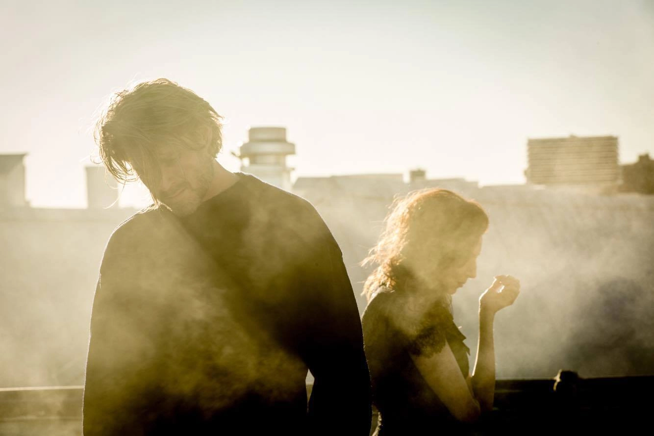 Здесь тоже отель, но уже современный. Коридоры безлики, лишены как роскошного убранства, так и безмолвных лакеев-стражей. Вместо геометрически выверенного парка — только бесформенный клочок крыши. Хотя парк всё же есть, но совершенно другой: по нему в расфокусе бегают в воспоминаниях героини две девочки.