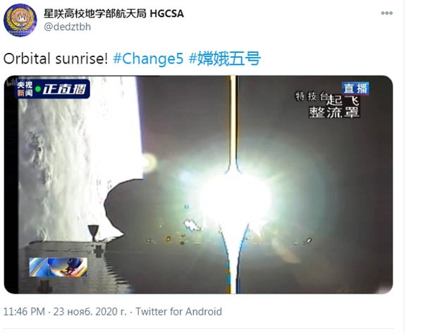 В социальных сетях велась трансляция старта. «Чанъэ-5» является очередной фазой лунного проекта Китая.