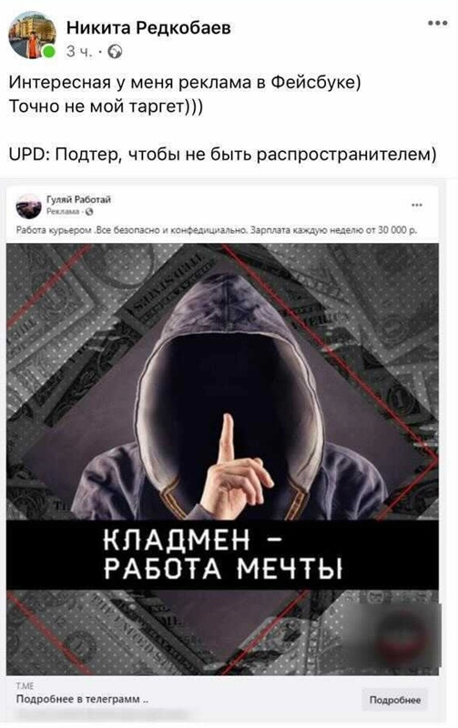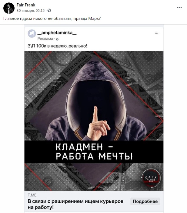 «Кладмен» — профессия мечты: как Facebook рекламирует торговлю наркотиками