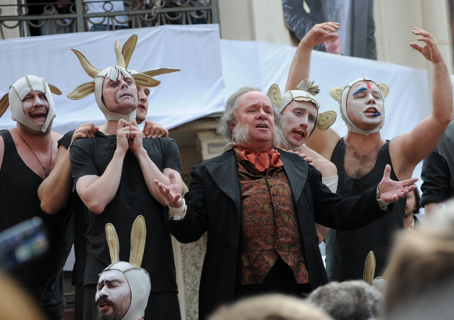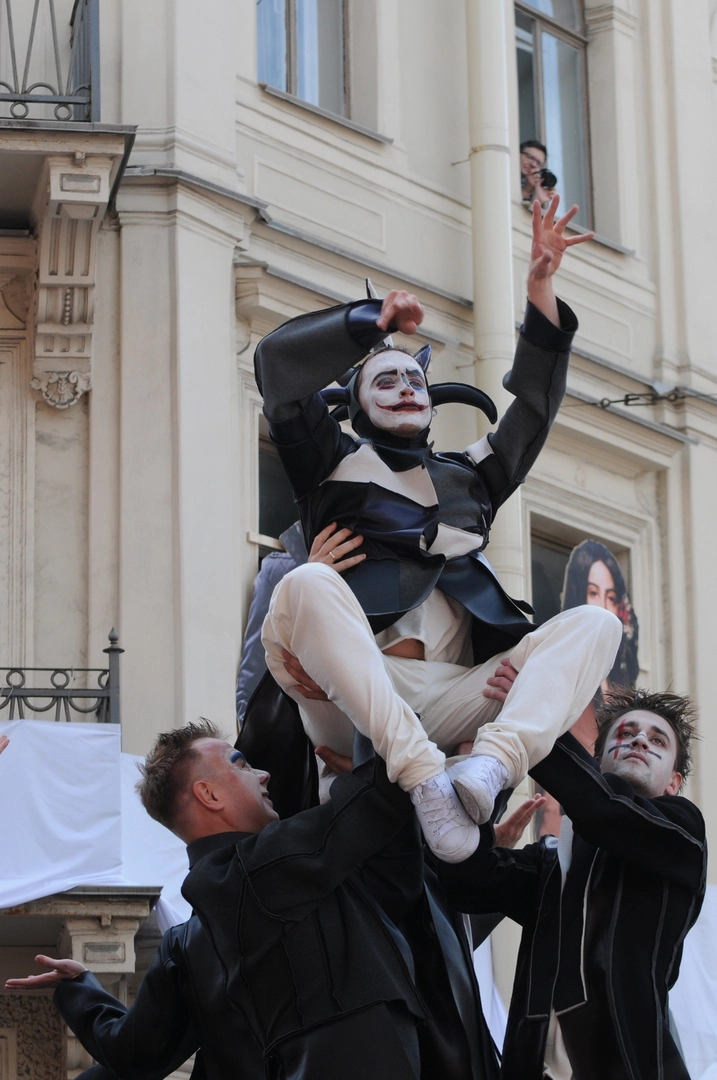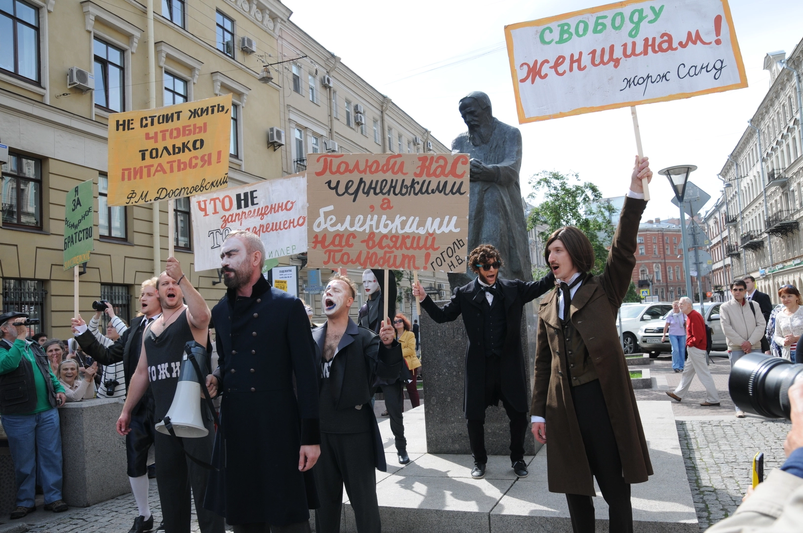 В спектакле играли ведущие актеры петербургских театров. В этом году «в гости к Достоевскому» пришла Мировая литература в виде дамы-аллегории и великие мировые классики: А.С.Пушкин, М.Ю.Лермонтов, Н.В. Гоголь, И.А.Крылов, Жорж Санд, Вильям Шекспир, О.Бальзак, Гёте и Шиллер. «Пушкин» прочитал «Скупого рыцаря» в стиле этнохаус, «баснописец Крылов» спел «Город золотой». Ожили и герои романов Достоевкого. Было много зажигательной музыки и танцев. На прощание «сам» Ф.М.Достоевский пригласил всех в следующем году собраться на этом же месте и обещал, что будет также весело.