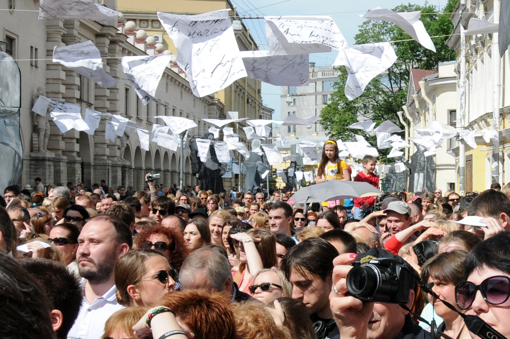 Кузнечный переулок, где находится музей-квартира писателя, превратился в пешеходную зону. Были организованы экскурсии, а на празднично украшенной улице можно было встретить героев романов Достоевского. В 12 часов, после залпа пушки Петропавловской крепости, от памятника Ф.М.Достоевскому, артисты, принимавшие участие в уличном спектакле и тысячи поклонников творчества писателя отправились к музею-квартире, где была установлена сцена, ФМД-Театр показал музыкальный спектакль «Достоевский маскарад. Комическое застолье».