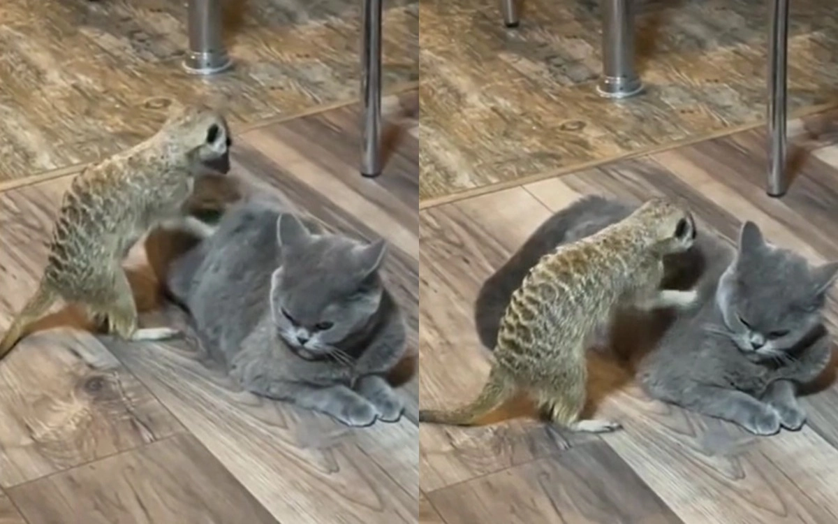 Клиентка возмущена: на видео попала кошка, недовольная массажем суриката
