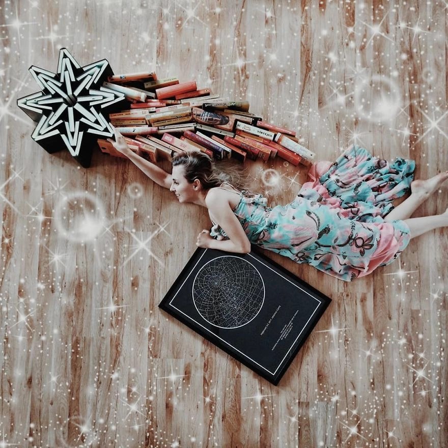 Многие замысловатые снимки девушка создаёт в соавторстве с книжным блогером Джеймсом Тревино (James Trevino), с которым «Ридус» знакомил вас немного ранее. Подписчики креативных блогов творческой пары признаются, что благодаря этим ярким фантазийным снимкам им снова захотелось взять книгу в руки.