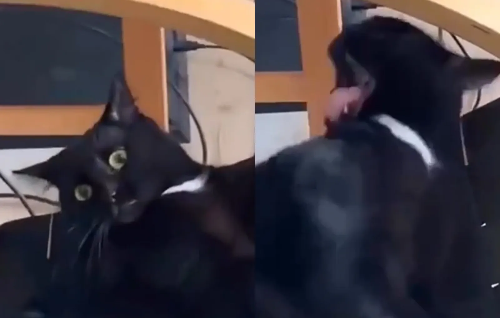 Пушистый не сразу определился, каким именно делом он должен быть занят, но его попытки разобраться с этим за доли секунды выглядели невероятно уморительно. Наверняка владелец котофея при виде его странных дрыганий смеялся до слез.
