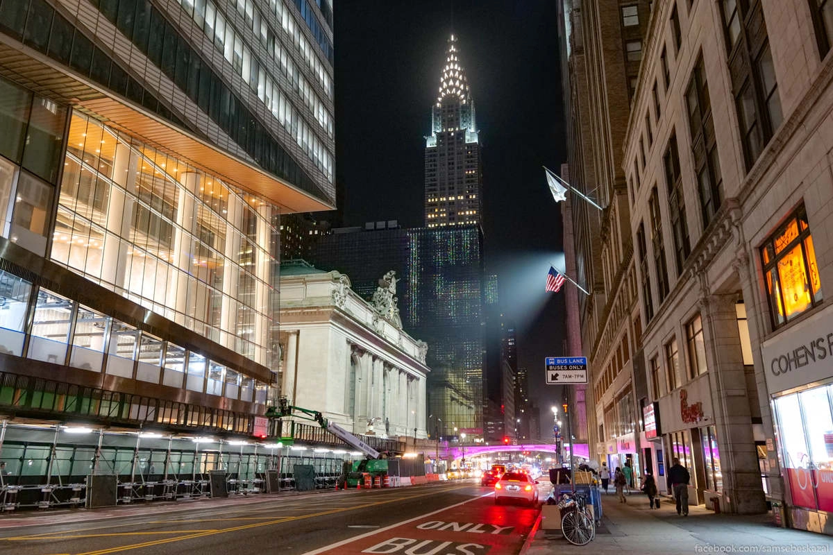 Нижние этажи свежепостроенного небоскреба One Vanderbilt, Центральный вокзал и Крайслер-билдинг.