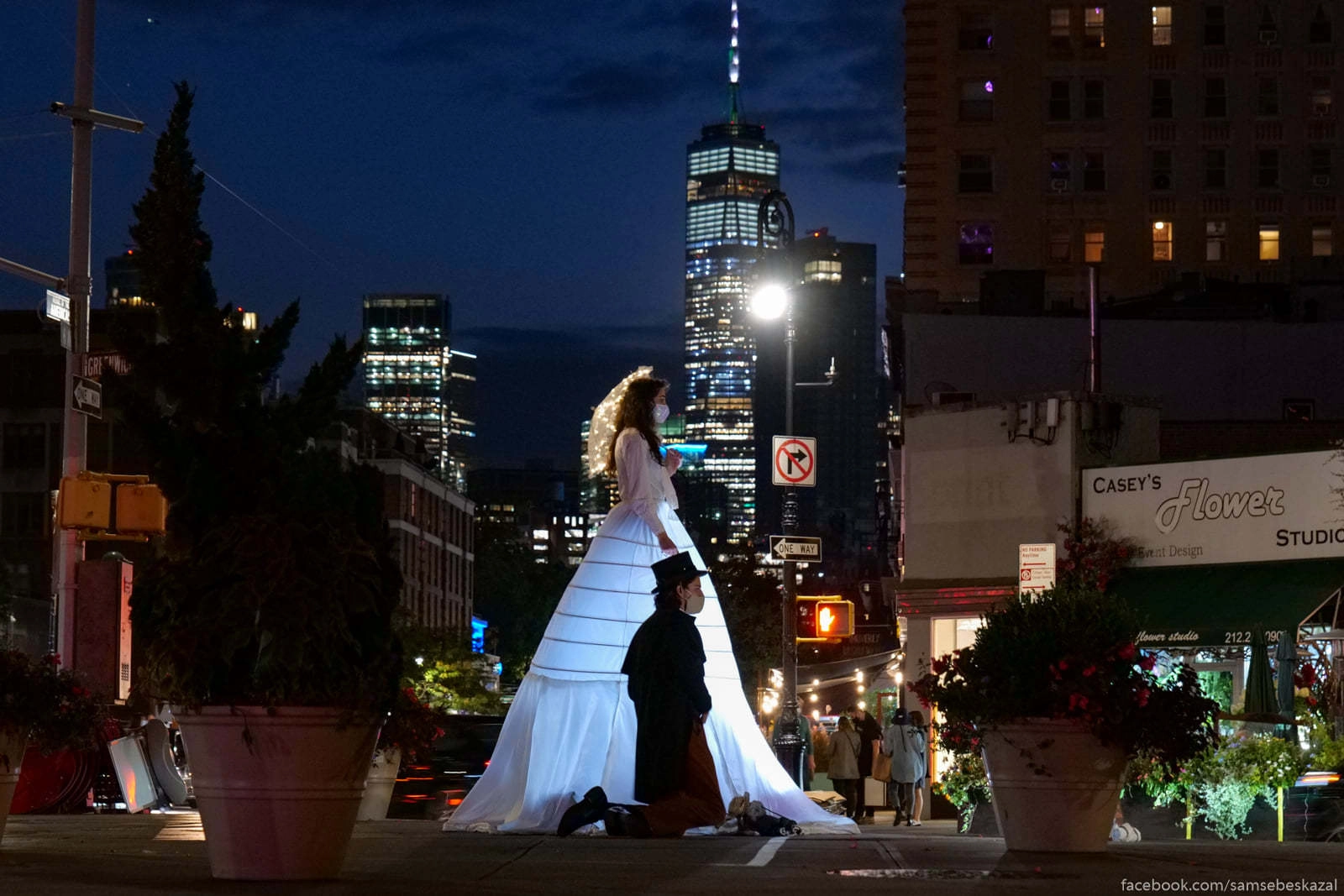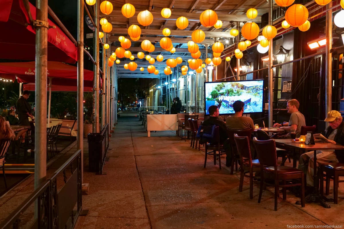Ночная ресторанная жизнь со столиками на улице. Тот случай, когда от уличных строительных навесов есть реальная польза бизнесу.
