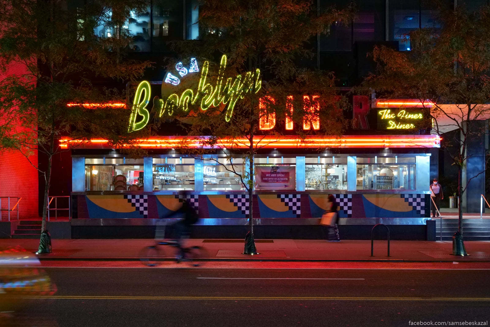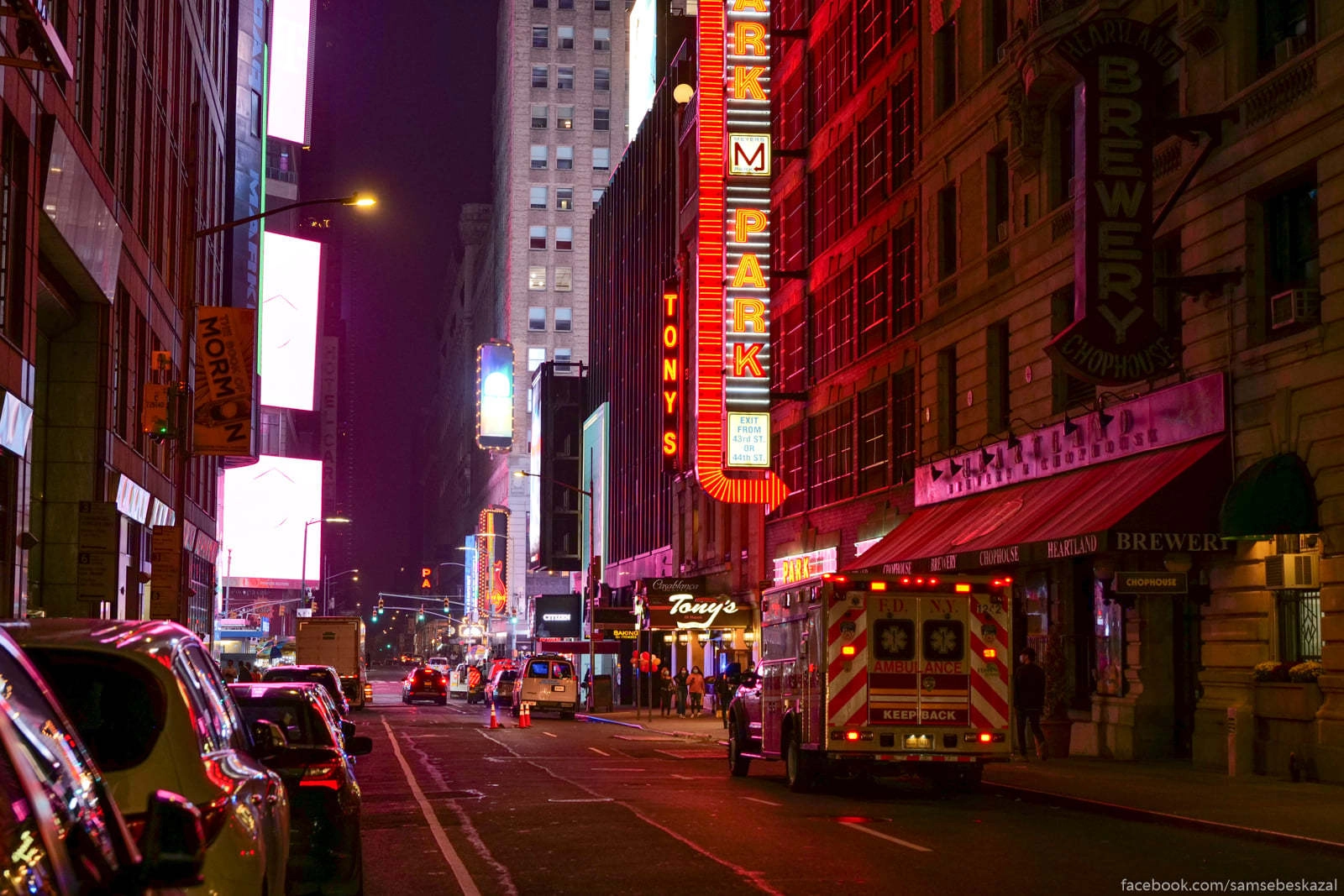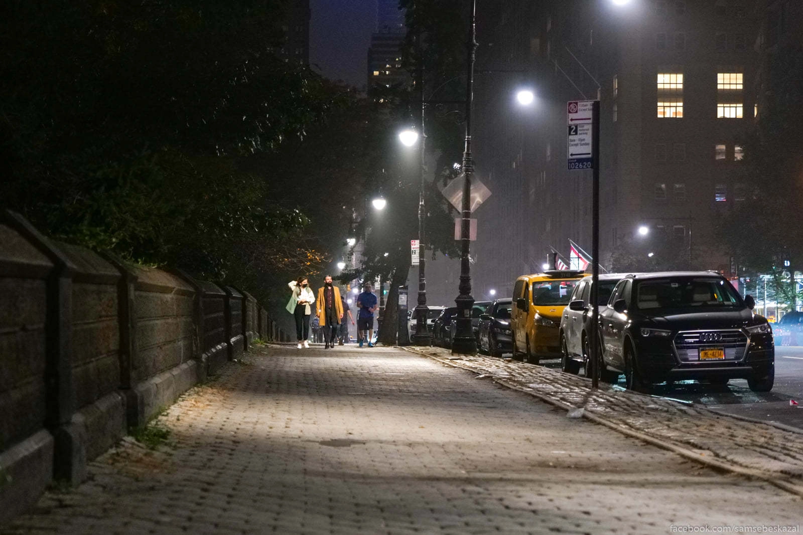 Ночной Нью-Йорк. Могу совершенно точно сказать, что Нью-Йорк дневной и Нью-Йорк ночной это два совершенно разных города. Тьма скрывает многие его недостатки и подчеркивает столь же многие достоинства. Делает обычные места уютными, а уютные — загадочными. Люди, звуки и даже небоскребы высящиеся вокруг вас в ночи — все они воспринимаются совершенно иначе.