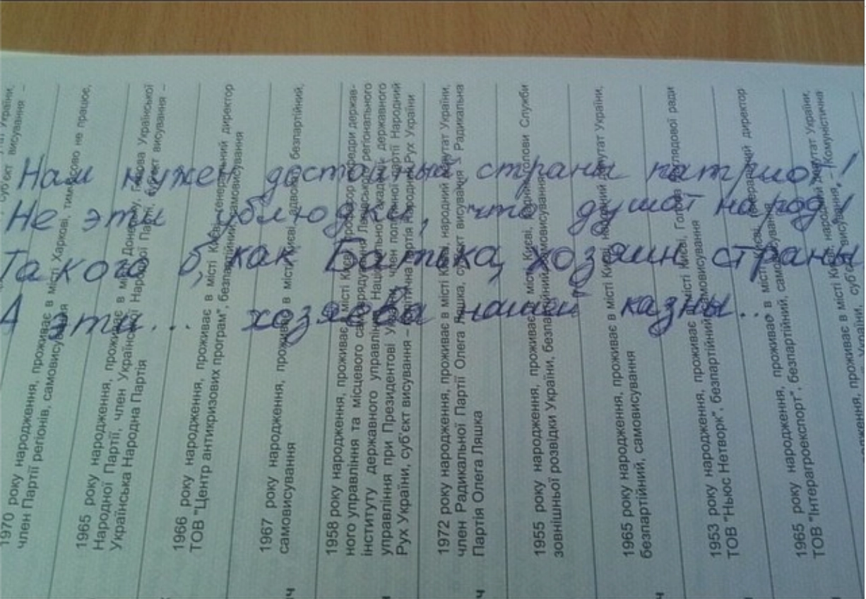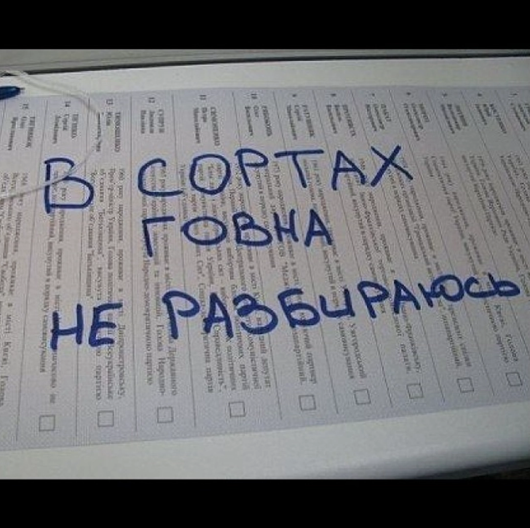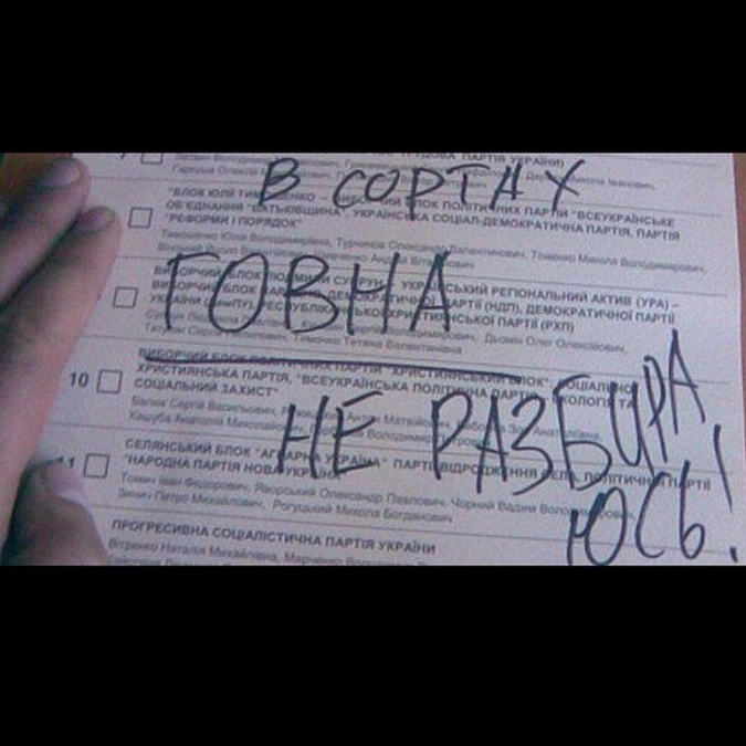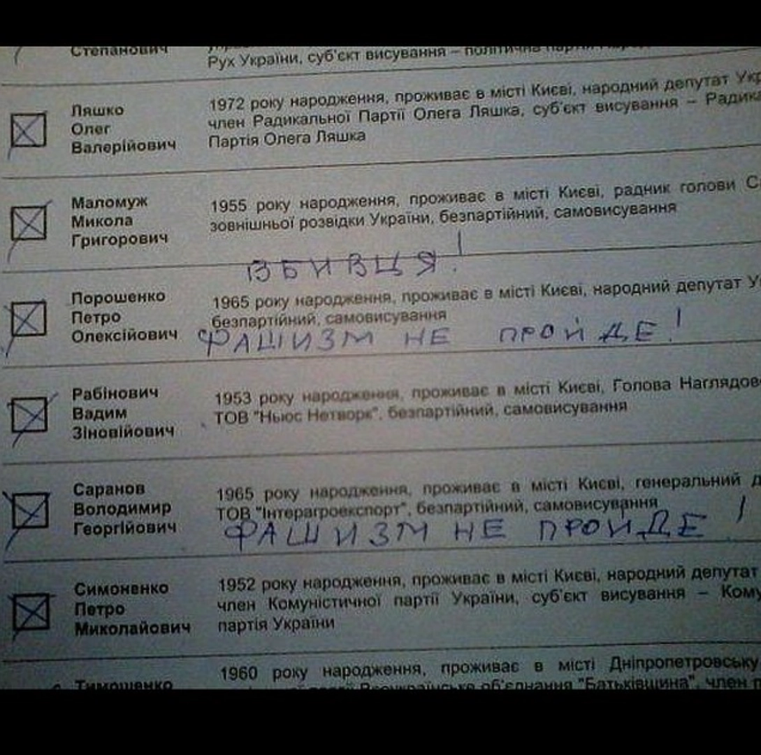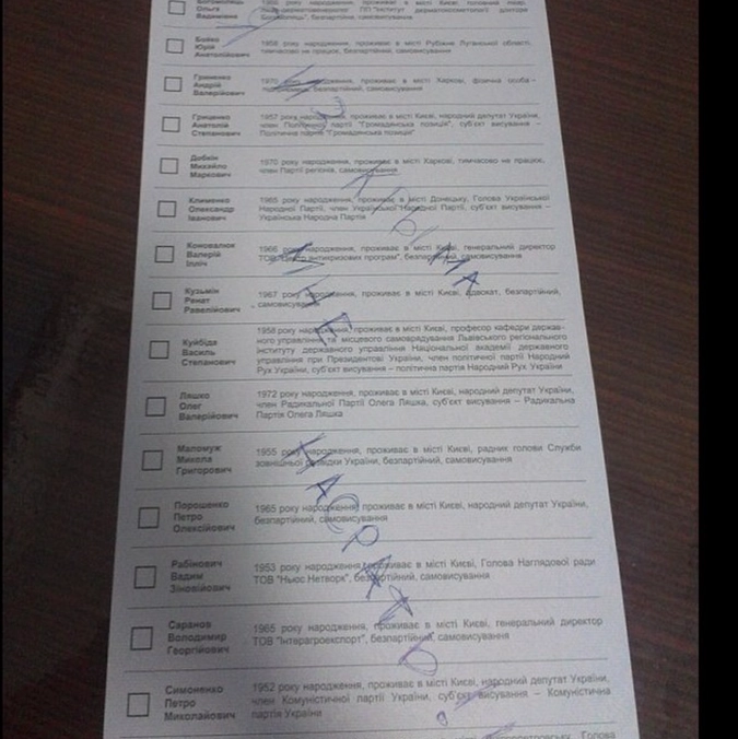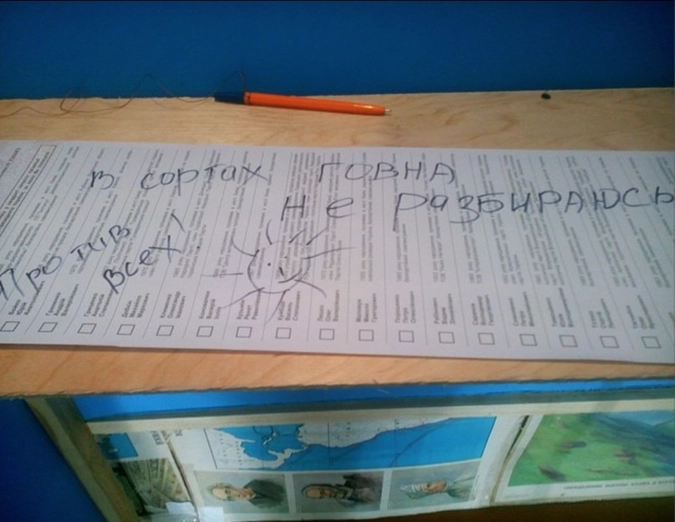 Пока в Киеве делают громкие заявления о высокой явке на избирательные участки для голосования на выборах президента, граждане Украины, возмущенные списком фамилий кандидатов, повсеместно дописывают в бюллетени свои собственные варианты. Среди «предлагаемых» кандидатов: Владимир Путин, Рамзан Кадыров, Иосиф Сталин, Дарт Вейдер и даже Ктулху.