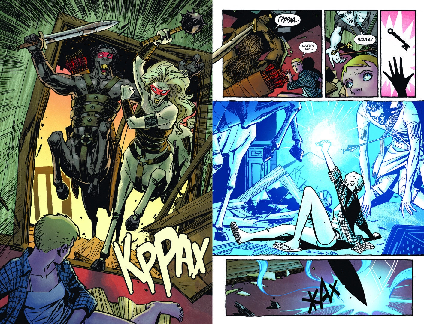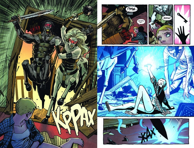 «Кровь и смерть» Брайана Аззарелло — большой трёхсотстраничный том из двенадцати выпусков, полный самых разнообразных миров, приключений и образов (чего стоит только открывающая повествование рука, вылезающая на месте отрубленной конской головы: вот как на свет появляются кентавры!).