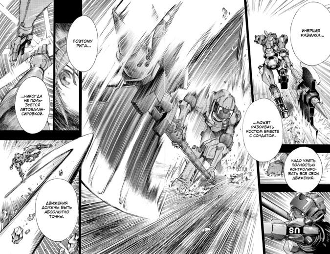 Но эта манга, безусловно, имеет и самостоятельное значение. Она невероятно здорово нарисована, очень эмоционально, энергично, даже страстно. Война — это война, бой — это бой, и каждый кадр — сгусток отчаянной боли. Прорисовка столь точна и выразительна, что когда в «облачке» текста говорится о том, «ярко-красный костюм Риты Вратаски производит неизгладимое впечатление на любого солдата», нисколько в этом не сомневаешься, просто забывая, что на самом деле разглядываешь чёрно-белую картинку.