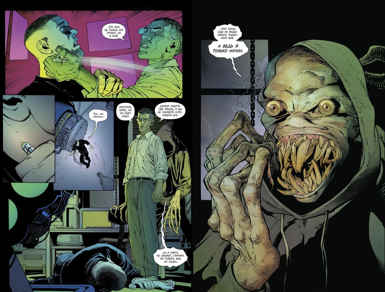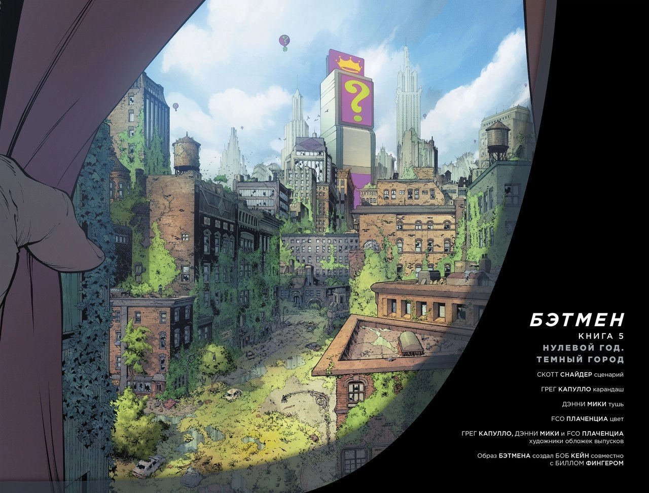 Разворот графического романа Скотта Снайдера и Грега Капулло «Бэтмен. Книга 5: Нулевой год. Тёмный город»